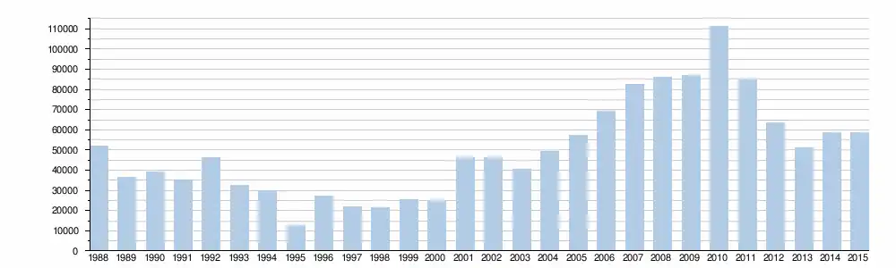| Total | 34 754 | 18 726 | 27 071 | 31 935 | 37 399 | 36 200 | 40 594 | 33 915 | 39 233 | 48 482 | 55 213 |