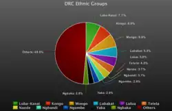- Luba (18 %), Mongo (17 %), Kongo (12 %), Nande (10 %)