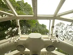 Une paire de portes d'entrée en acier de 1,27 cm d'épaisseur qui s'ouvre sur la zone du bunker mesure environ 3,3 mètres du rez-de-chaussée au point le plus bas du plafond. Le plafond présente une conception robuste en forme de vague qui monte et descend d'environ 40 cm et il est recouvert d'acier. Cette conception est à nouveau utilisée pour minimiser l'effet d'une éventuelle explosion et pour bénéficier de la déviation des ondes de souffle.