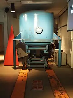 Le métal à déposer est placé dans un creuset en tungstène (dont la température de fusion est extrêmement élevée, 3 400 °C), lui-même placé sous la lame de substrat solide. Le tout est recouvert d'une cloche de verre à joint étanche, capable de résister aux grandes différences de pression.