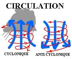 Cet effet de friction tend à ramener de l'air vers le centre de la dépression, par en dessous, et cette arrivée d'air limitée à la base ne peut s'équilibrer qu'avec une montée de l'air central le long de l'axe de la dépression. Au régime horizontal sensiblement circulaire et dominé par la force de Coriolis, se superpose alors un régime vertical mettant en place un mouvement vertical ascendant au centre d'une cellule de convection atmosphérique.