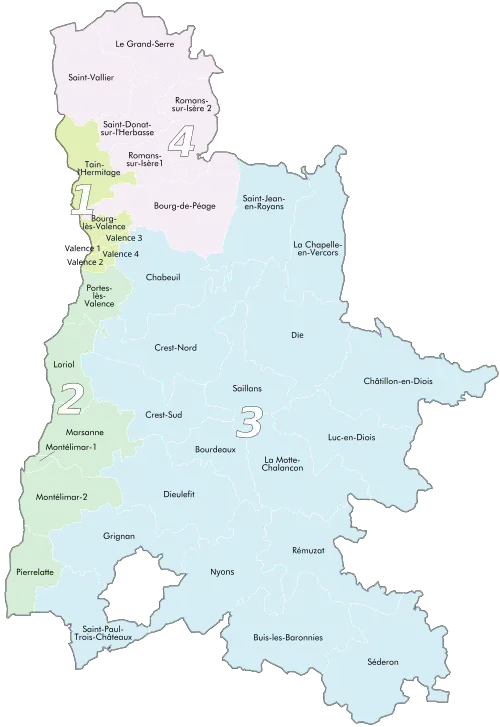Le département de la Drôme est divisé de 1958 à 1986 en trois circonscriptions législatives, le nombre de sièges ayant été porté à quatre lors du découpage électoral de 1986, celui de 2010, en vigueur à compter des élections législatives de 2012, n'ayant pas affecté le département.