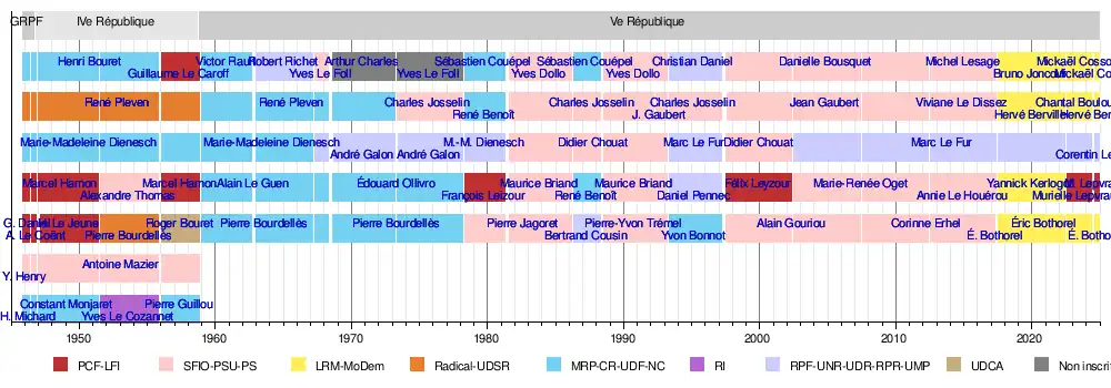| 2e circonscription | Charles Josselin | PS | 23 juin 1988 | 4 mai 1992 | Gvt |