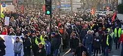 Le , au début du mouvement contre la réforme des retraites, les manifestations réunissent entre 806 000 (chiffres du ministère de l'Intérieur) et 1 500 000 (chiffres de la CGT) personnes en France. Le 3 novembre, une assemblée de 600 Gilets jaunes appelle à rejoindre la protestation, qui mobilise les syndicats, des employés des transports publics, pompiers, enseignants, étudiants[199].