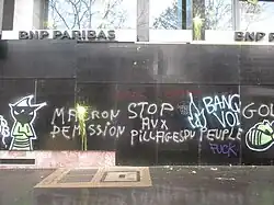 - ↑ Alice Serrano, « "Gilets jaunes" : qui a commis les dégradations sur les Champs-Élysées ? », sur Francetvinfo.fr, Franceinfo, (consulté le ).