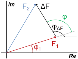 En effet, puisque les atomes non substitués lors du remplacement isomorphe occupent les mêmes positions dans les deux structures, leurs contributions aux facteurs de structure sont égales. La phase du facteur de structure total pour le cristal 1 peut alors se déduire par la relation (voir figure à droite)[12] :