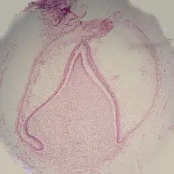 - ↑ Vaahtokari A, Aberg T, Jernvall J, Keränen S, Thesleff I, « The enamel knot as a signaling center in the developing mouse tooth », Mechanisms of Development, vol. 54, no 1, , p. 39–43 (PMID 8808404, DOI 10.1016/0925-4773(95)00459-9)