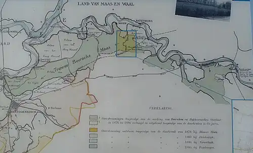 Malgré les canalisations, il fallait que l'eau des crues passe. Pour régulariser les inondations, on a laissé sur la rive gauche, entre des tronçons de digues, des déversoirs naturels, entre autres à Lith, à Grave et à Beers, pour diriger l'eau dans la zone inondable parallèle à la Meuse. Cette zone inondable, prenait très tôt le nom de Beersche Overlaat et la rivière temporelle le nom de Beersche Maas.