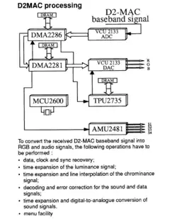D2 Mac est l’évolution du format Multiplexed of Analog Components (MAC) mis au point par l’organisme privé Independent Broadcasting Authority (IBA) en Grande-Bretagne. Ce système intègre des circuits électroniques et des logiciels intégrés. Il consiste à traiter la vidéo analogique en comprimant selon une base de temps, les composantes de luminance et de chrominance pour juxtaposer séquentiellement ces signaux. Le signal audio est numérique et codé au format MIC.
