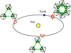 La conception s'inspire de celle de LISA, avec quatre groupes de satellites arrangés en triangle en orbite héliocentrique, formant ainsi un réseau d'interféromètres ; il se distingue cependant par une séparation entre les satellites de l'ordre de 1 000 km, bien inférieure aux millions de km de LISA, qui lui permet de sonder une bande de fréquence différente. Trois des groupes de satellites sont répartis équitablement autour du Soleil, tandis que le quatrième est placé au même endroit que l'un d'eux. Cette configuration a pour but de faciliter la corrélation entre les observations des différents groupes[1].