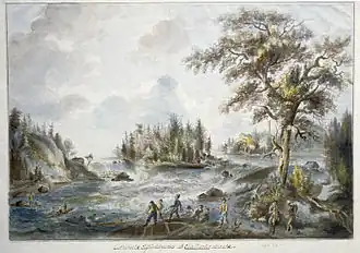 Aménagement sur l'Ämån, affluent du Dalälven, afin de permettre le passage du bois flotté