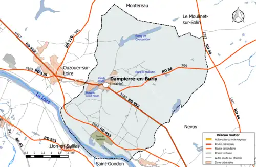 Dampierre-en-Burly est traversée par quatre routes départementales: les RD 952 , 953, 56 et 44.