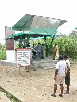 - ↑ CAMEROON: The aesthetics of water in IRIN humanitarian news and analysis a service of the UN Office for the Coordination of Humanitarian Affairs, 20/05/2008; Cameroon: multifunctional water fountain also serves as a meeting place and store in "WASH news Finance: Financing news related to water, sanitation and hygiene (WASH) in developing countries", 28/05/2008; Zayd Minty, The Freedom to Dream in "Art South Africa", V6.3., 03/2008.