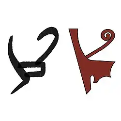 Il représente la couronne rouge Decheret de Basse-Égypte. Il est translittéré n, dšr.t, jn ou bj.ty.