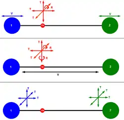 En trois dimensions, il existe 6 degrés de liberté associés au mouvement d'une particule, 3 pour sa position, 3 pour sa quantité de mouvement. Il existe donc 6 degrés de liberté au total. Une autre façon de justifier ce schéma est de considérer que le mouvement de la molécule sera décrit par le mouvement de deux particules mécaniques représentant ses deux atomes, que 6 degrés de liberté sont attachés à chaque particule, comme ci-dessus. Avec cette autre considération, il apparaît que différents ensembles de degrés de liberté peuvent être définis afin de définir le mouvement de la molécule. En fait les degrés de liberté pour un système mécanique est un ensemble d'axes indépendants dans l'espace des phases du système, ce qui permet de le générer entièrement. Pour un espace multidimensionnel comme l'espace des phases, il existe plus d'un ensemble possible d'axes. Il est établi que tous les degrés de liberté de la molécule d'hydrogène ne participent pas à l'expression de son énergie. Par exemple, les degrés associés à la position du centre de masse n'y participent pas.