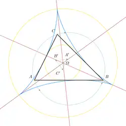 La deltoïde de Steiner d'un triangle a les propriétés suivantes :