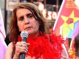 Elle dénonce l'attitude discriminatoire et violente de la police à l'égard de la communauté transgenre[15], et le fait que la communauté est souvent obligée de se prostituer pour gagner sa vie[3]. Elle critique aussi le manque d’espace médiatique accordé aux personnes queer[3]. Elle est responsable de l'impression et de la distribution des premiers badges triangulaires roses en Turquie et fait campagne avec succès pour l'abrogation des lois discriminatoires en matière de genre[3].