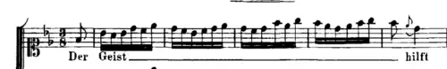 L'Esprit qui vole à notre secours est figuré dans la section a. par de longs mélismes, de manière semblable à la fugue centrale de Jesu, meine Freude (sur le mot « geistlich »)[Ca 2]. Le rythme est une danse ternaire de type passepied[Jo 1].