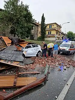 En Italie, deux personnes ont été tuées par des chutes d'arbres en Toscane et au moins 41 autres personnes ont été blessées dans le nord de l'Italie[11],[12].