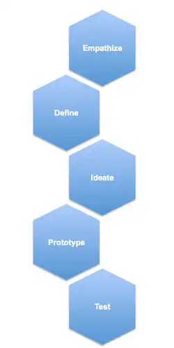 La d.school[7] de l'université Stanford définit cinq étapes[8] qui s'enchaînent logiquement mais ne doivent pas être prises comme un processus linéaire : on peut et doit faire plusieurs cycles, revenir à l'empathie pendant qu'on prototype, etc.[5].