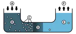 - Osmose inverse : cette technique « membranaire » repose sur une ultrafiltration sous pression au travers de membranes dont les pores sont des « trous » si petits que même les sels sont retenus. Cette technique, en plein essor (coût énergétique moyen (≈ 4–5 kWh/m3)[35]) est un système éprouvé ayant montré sa fiabilité.