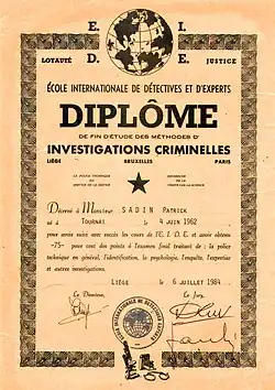 - ↑ I.K.D. Internationale Kommission der Detektiv-Verbände ou également I.R.I.S., groupement européen élitiste