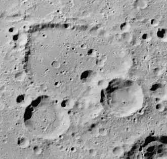 Un rayon de Giordano Bruno au nord-nord-ouest passe le long du bord ouest de Deutsch.