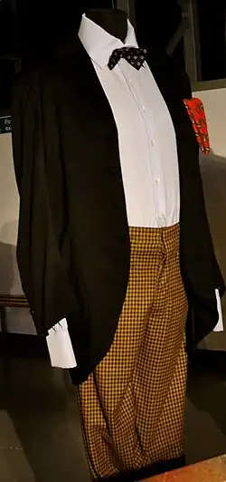 - Le costume du Deuxième Docteur a été créé à la suite d'une discussion entre Patrick Troughton (l'acteur), Innes Lloyd (producteur) et Gerry Davis (écriture)[2]. Il portait une veste noire bien trop grande pour lui, en dessous de laquelle il avait une chemise colorée, ainsi que des pantalons à carreaux. Il portait également des nœuds papillons.