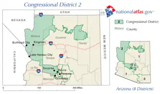 - Le 1er district congressionnel d'Arizona devient le 2e district du Congrès de l'Arizona.