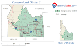 Le 2e district congressionnel de l'Idaho est l'un des districts de l'État américain de l'Idaho, dans la partie orientale de l'État. À partir des élections de 2012, le district s'est étendu vers l'ouest et comprend désormais la majeure partie de Boise, la capitale de l'État et la plus grande ville[1]. Le district est actuellement représenté par le Républicain Mike Simpson. Ancien dentiste de Blackfoot, il a été élu pour la première fois en 1998; le siège s'est ouvert lorsque son prédécesseur Mike Crapo s'est présenté avec succès au Sénat américain.