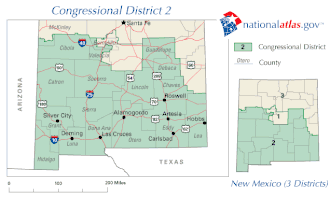 Le 2e district congressionnel du Nouveau-Mexique dessert la moitié sud du Nouveau-Mexique, y compris Las Cruces, et le quart sud d'Albuquerque. Il est actuellement représenté par le Démocrate Gabe Vasquez.