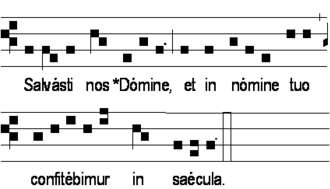Il apparaît notamment dans la mélodie-type ci-dessous, très fréquente dans l'antiphonaire.