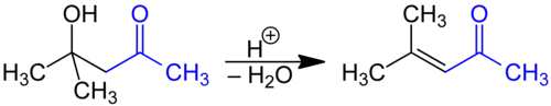 Le DAA est assez facilement déshydraté en oxyde de mésityle, une cétone α,β-insaturée.