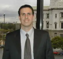 Il est membre du Parti par le Gouvernement du Peuple (PGP, social-démocrate) et représentant de la Jeunesse 99 dans l'Union internationale de la jeunesse socialiste (IUSY) jusqu'à l'année 1994. Durant l'année 1994 après la création du parti Nuevo Espacio, il est son premier représentant devant l'IUSY.