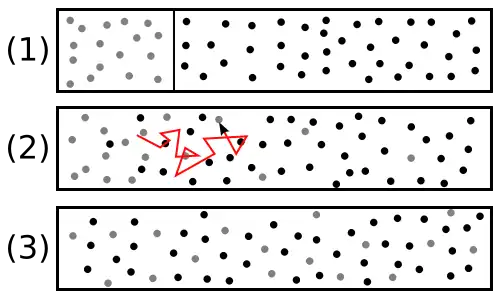 La diffusion chimique est un phénomène de transport irréversible qui tend à homogénéiser la composition du milieu. Dans le cas d'un mélange binaire et en l'absence des gradients de température et de pression, la diffusion se fait des régions de plus forte concentration vers les régions de concentration moindre[1]. Dans le cas le plus général la description précédente reste le plus souvent valable, mais l'on connaît des contre-exemples, où l'une des espèces migre d'une région de plus faible concentration vers une autre de concentration supérieure (uphill diffusion).