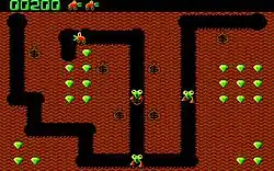 Les ennemis, qui tuent par simple contact, revêtent deux formes : en début de partie, ce sont des Nobbin, incapables de creuser des galeries, si bien qu'ils empruntent celles tracées par le joueur. Quand ils se croisent un certain nombre de fois, ils mutent en Hobbin. C'est à ce moment qu'ils sont le plus dangereux, car ils peuvent creuser. En gobant les diamants et sacs d'or, ils font perdre des points au joueur.