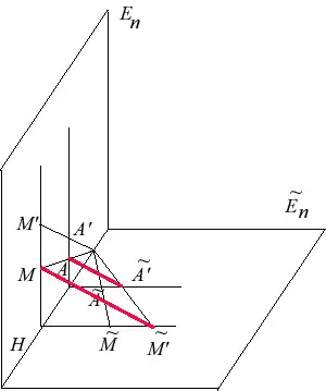 On montre que la droite garde une direction fixe , ce qui montre que s'obtient par projection de dans (projection de base et de direction ). Connaissant , on en déduit par rotation[10].