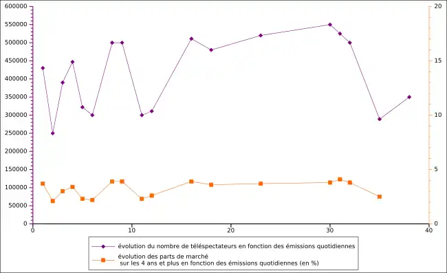 En revanche, l'émission réalise sa moins bonne audience le 17 juin 2010 avec 300 000 téléspectateurs et 2,3 % de parts de marché sur les 4 ans et plus.