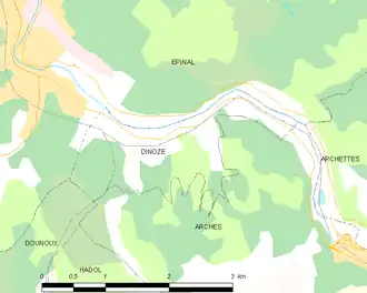 La création de la commune de Dinozé ne date que du . Le village précédemment rattaché à Arches puis à l'ancienne commune de Saint-Laurent[20], aujourd'hui incluse dans le territoire communal d'Épinal[21].