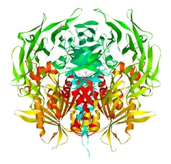 Diagramme en ruban de la dipeptidyl peptidase-4 humaine.