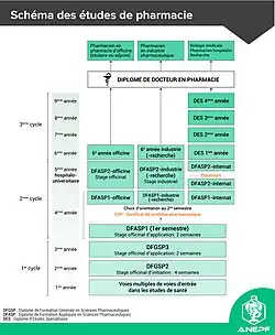 - ↑ « Arrêté du 31 octobre 2008 fixant la liste des diplômes d'études spécialisées de pharmacie »