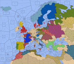 Les noms des régions sont, pour celles qui contiennent un centre « national » (car appartenant à une grande puissance en début de partie), le nom d’une grande ville (Paris, Brest…) ou, pour les régions dépourvues de centre ou avec un centre « neutre » avant les premières conquêtes, le nom d’une province ou d’un État (Silésie, Belgique…). Chacune de ces régions est désignée par une abréviation reprenant généralement les trois premières lettres du nom (Par, Bre, Sil ou Bel pour les précitées).