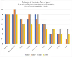 Globalement, les États nucléaires durant les années 2010 tendent à relancer l'accroissement quantitatif et la modernisation de leurs arsenaux et à moins exercer leur leadership et leur coopération en faveur de la non-prolifération et du désarmement[48].