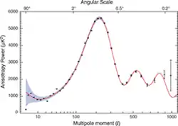 La taille angulaire de l’horizon sonore permet ainsi de placer des contraintes très fortes sur la courbure spatiale. Ce résultat a été mis en évidence de manière détaillée pour la première fois grâce à l’expérience BOOMERanG en 2000[2]. Depuis l’arrivée des données du satellite WMAP en 2003, les contraintes sur la courbure spatiale ont pu être affinées[3]. Dans le cadre du modèle standard de la cosmologie, Ce genre de test permet de contraindre le paramètre de densité de l’univers à des valeurs très proches 1, et par suite contraindre le rayon de courbure à être significativement plus grand que la taille de l’univers observable et par conséquent bien plus grand que le rayon de Hubble.