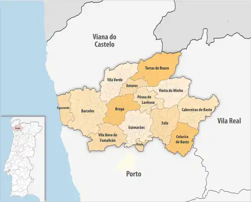 Celorico de Basto, Fafe, Guimarães, Póvoa de Lanhoso, Vieira do Minho, Vila Nova de Famalicão et Vizela