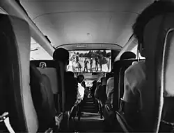 À partir du milieu des années 60, certains films en vol ont été lus à partir de bandes vidéo, à l'aide des premiers magnétoscopes compacts à transistors fabriqués par Sony (tels que le SV-201 et le PV-201) et Ampex (tels que le VR-660 et le VR-1500), et affichés sur des écrans CRT montés fixés au plafond de la cabine au-dessus des sièges des passagers, avec plusieurs moniteurs placés à quelques sièges d'intervalle. Le son était diffusé par les casques d'écoute.