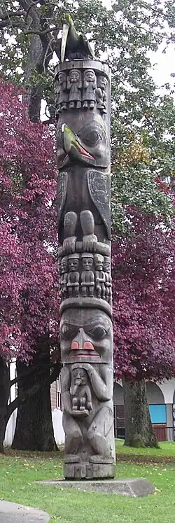 - Le corbeau ou Chulyen, Hemaskas, GuGuyni, Nankil’slas, Kwekwaxa’we, Txamsem, We-ghyet, Yhel selon les tribus, esprit farceur, qui tend des pièges, esprit de la ruse.