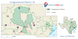 Le 18e district congressionnel du Texas comprend une grande partie du centre-ville de Houston et ses environs. C'est le district du centre-ville de Houston depuis 1972.