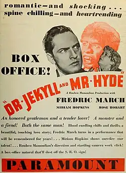 Docteur Jekyll et Mister Hyde (titre original : Dr. Jekyll and Mr. Hyde) est un film d'horreur et science-fiction américain sorti en 1931, réalisé par Rouben Mamoulian et produit par Adolph Zukor pour la Paramount Pictures. Cette première adaptation pour le cinéma parlant du célèbre roman de Robert Louis Stevenson, aux fortes connotations érotiques, contribue à fixer durablement l'image hollywoodienne du mythe du médecin honorable progressivement submergé par son double aux pulsions incontrôlables. Elle est également l'occasion pour son réalisateur de se livrer à des expérimentations formelles audacieuses et permet à son acteur principal de remporter le prix d'interprétation aux Oscars du cinéma de 1932.