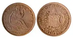 Fin , quatre pièces d'un demi-dollar confédéré sont frappées, avec une presse à main, par des employés de la Monnaie de La Nouvelle-Orléans. Comme la matrice de la pièce présente un relief accentué, un test d'emboutissage est fait pour voir si les pièces peuvent se libérer de la matrice, réalisée par un imprimeur offset (A.H.M. Peterson) de La Nouvelle-Orléans, novice dans la frappe de monnaie. L'avers de ces pièces est frappé en utilisant une matrice de l'Union (la Liberté assise) et le revers avec la matrice confédérée créée par Peterson. Ces pièces sont appelées « originales », et leur localisation est connue à ce jour.